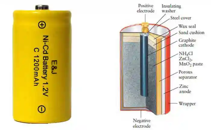 | نیکل–کادمیم (Ni–Cd) | واکنش بین نیکل اکسید و کادمیم در محلول قلیایی | ابزار صنعتی |