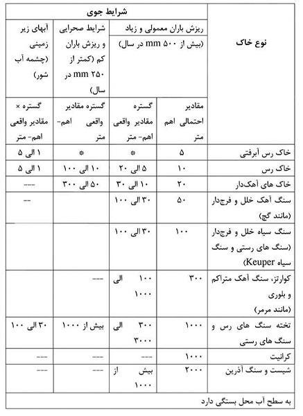 همانطور که اشاره شد؛. مقاومت خاک تأثیر مهمی در تعیین مقاومت الکترود زمین دارد. مقاومت خاک همچنین به نمک های محلول در خاک، اندازه و موقعیت آنها نسبت به یکدیگر، رطوبت خاک و شیمی خاک بستگی دارد. مقاومت الکتریکی ویژه خاک بر حسب اهم در جدول زیر آورده شده است: