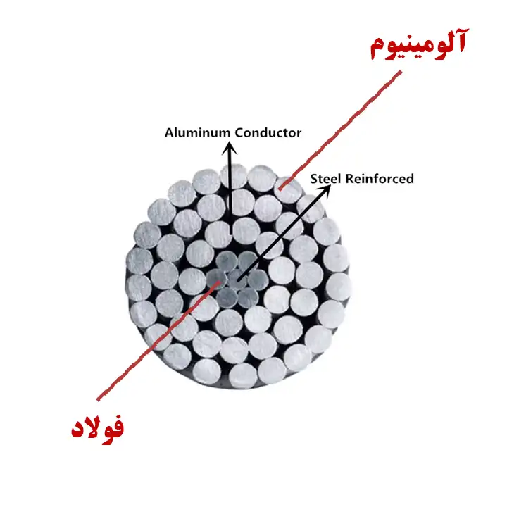 یعنی: رشتههای آلومینیوم برای عبور جریان + هسته فولادی برای استحکام.