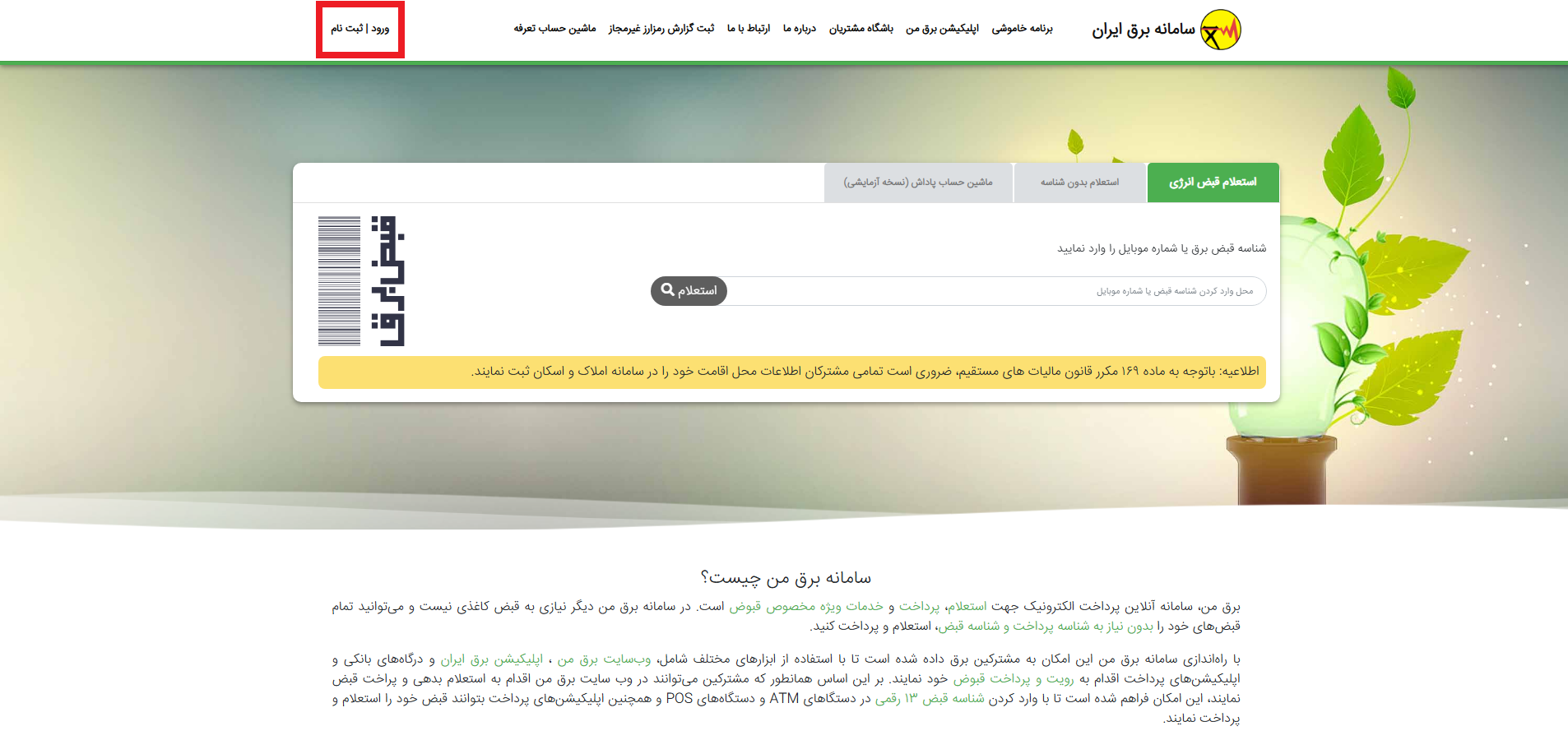 پرداخت و مشاهده قبض برق،