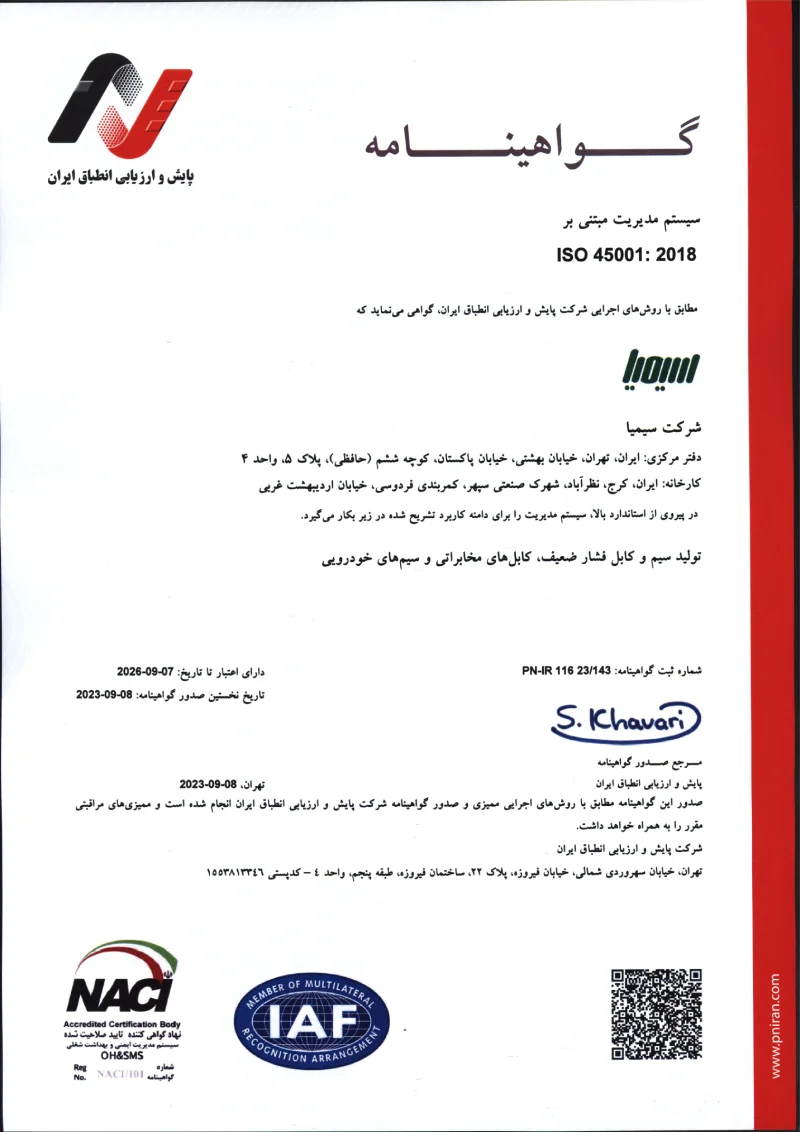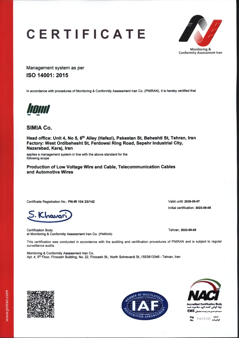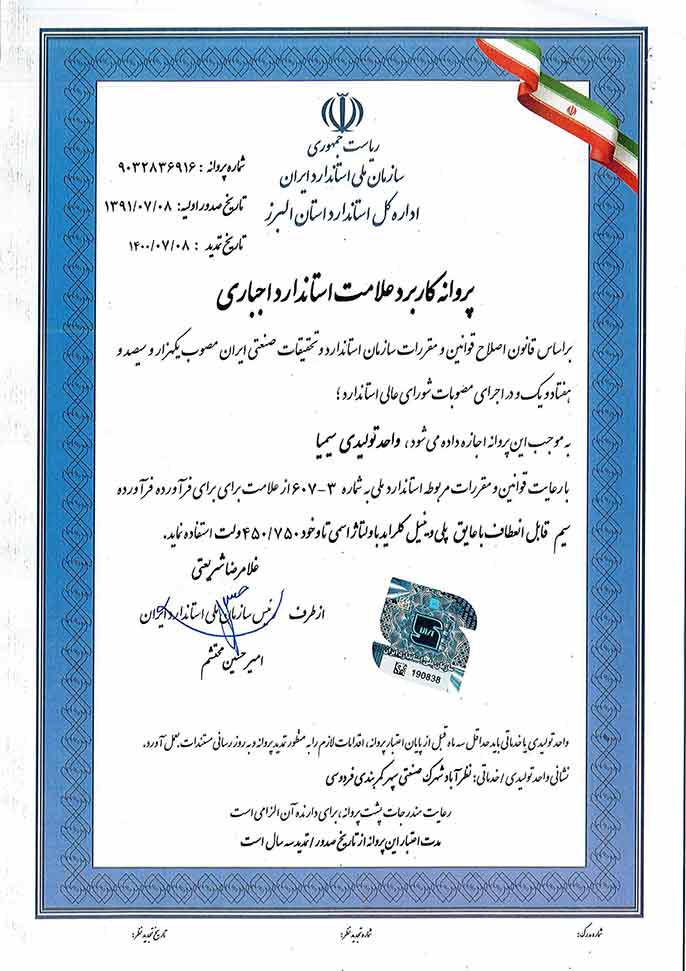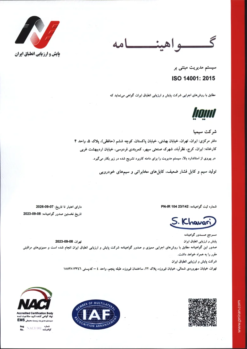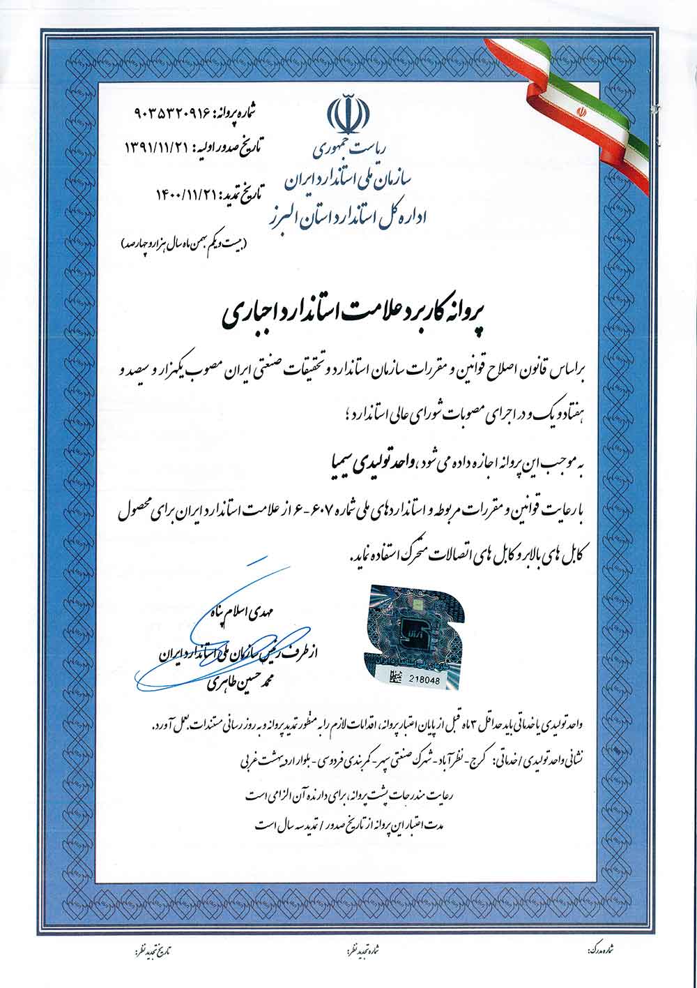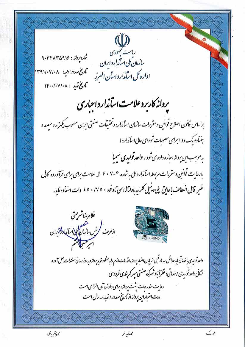 استانداردها و گواهینامه های سیم و کابل سیمیا