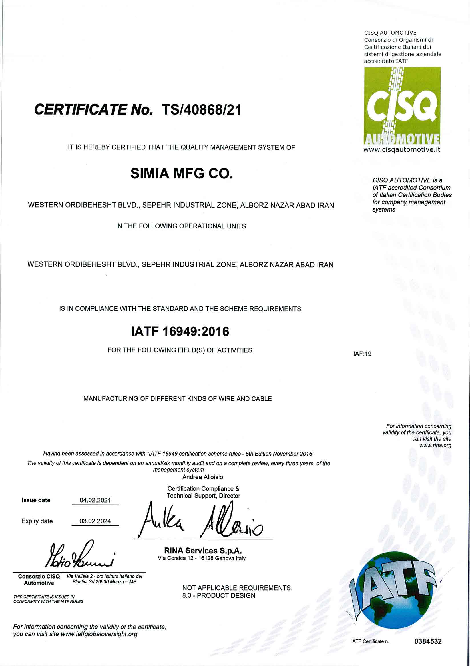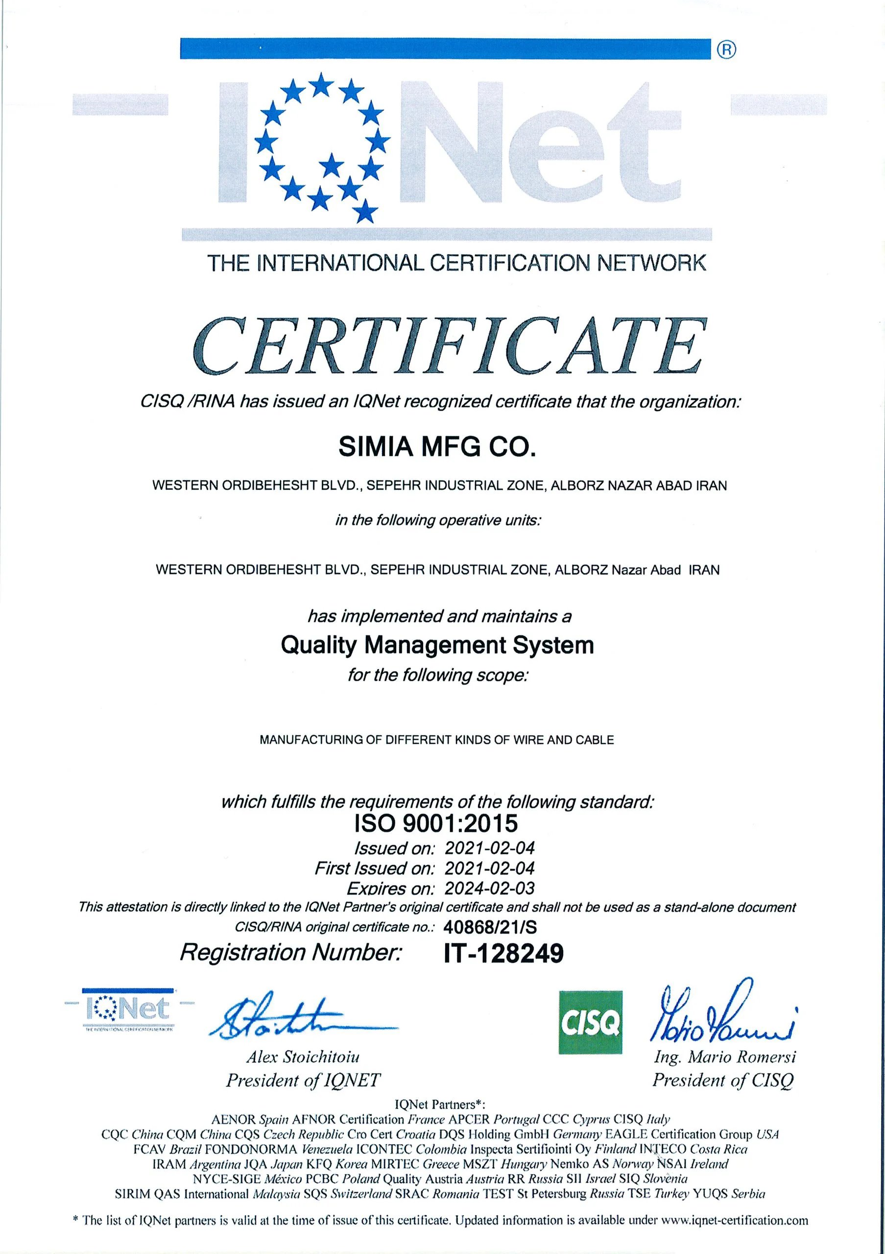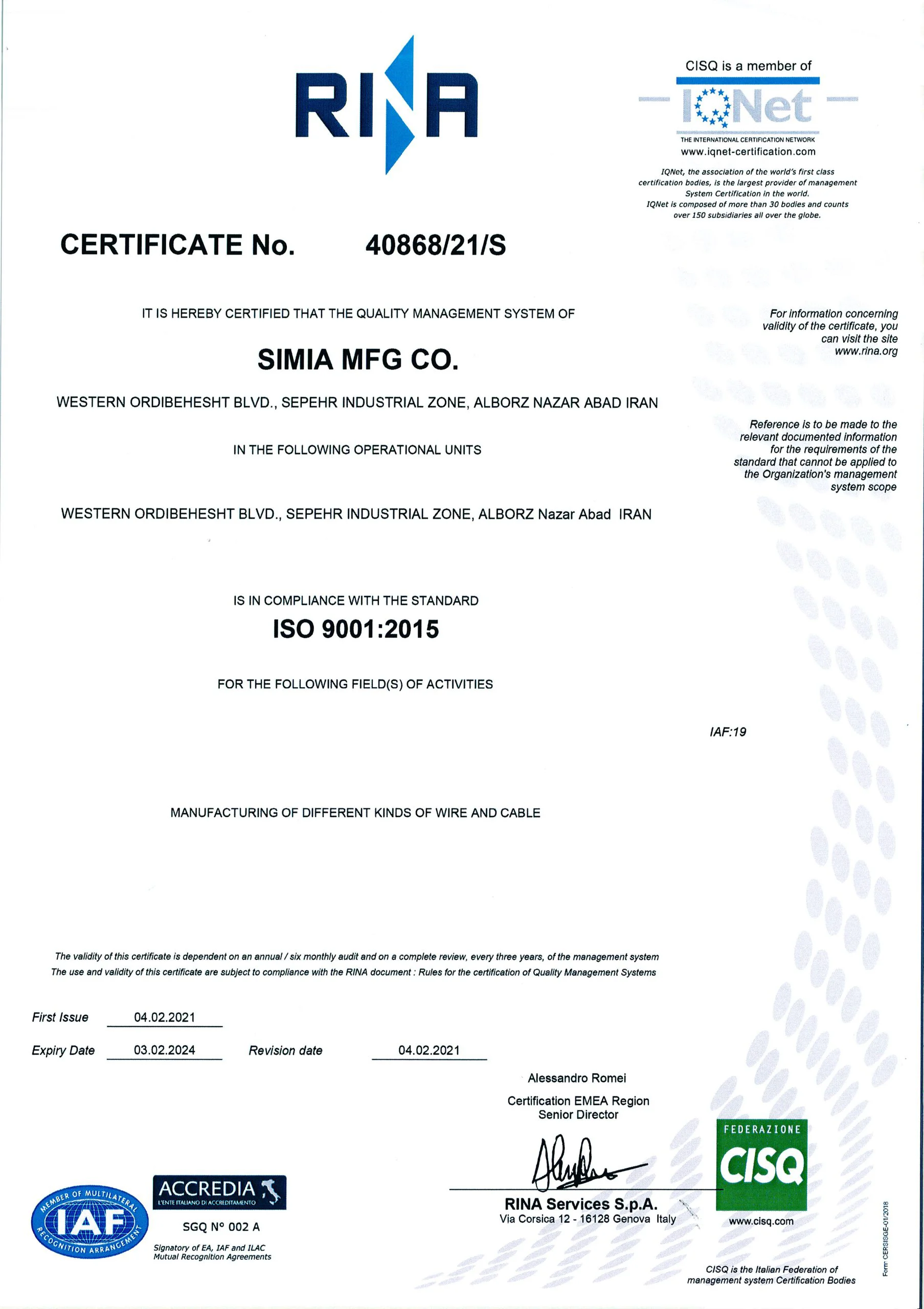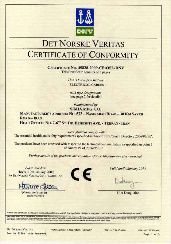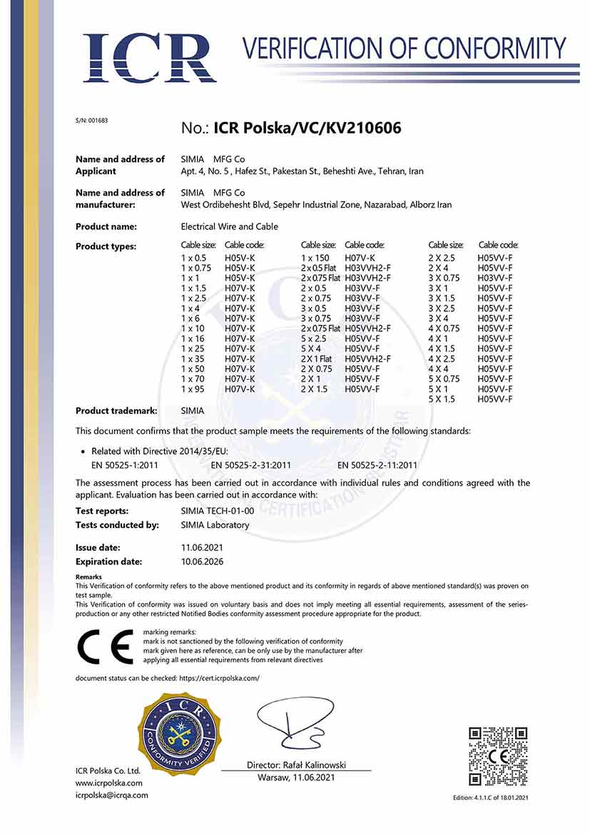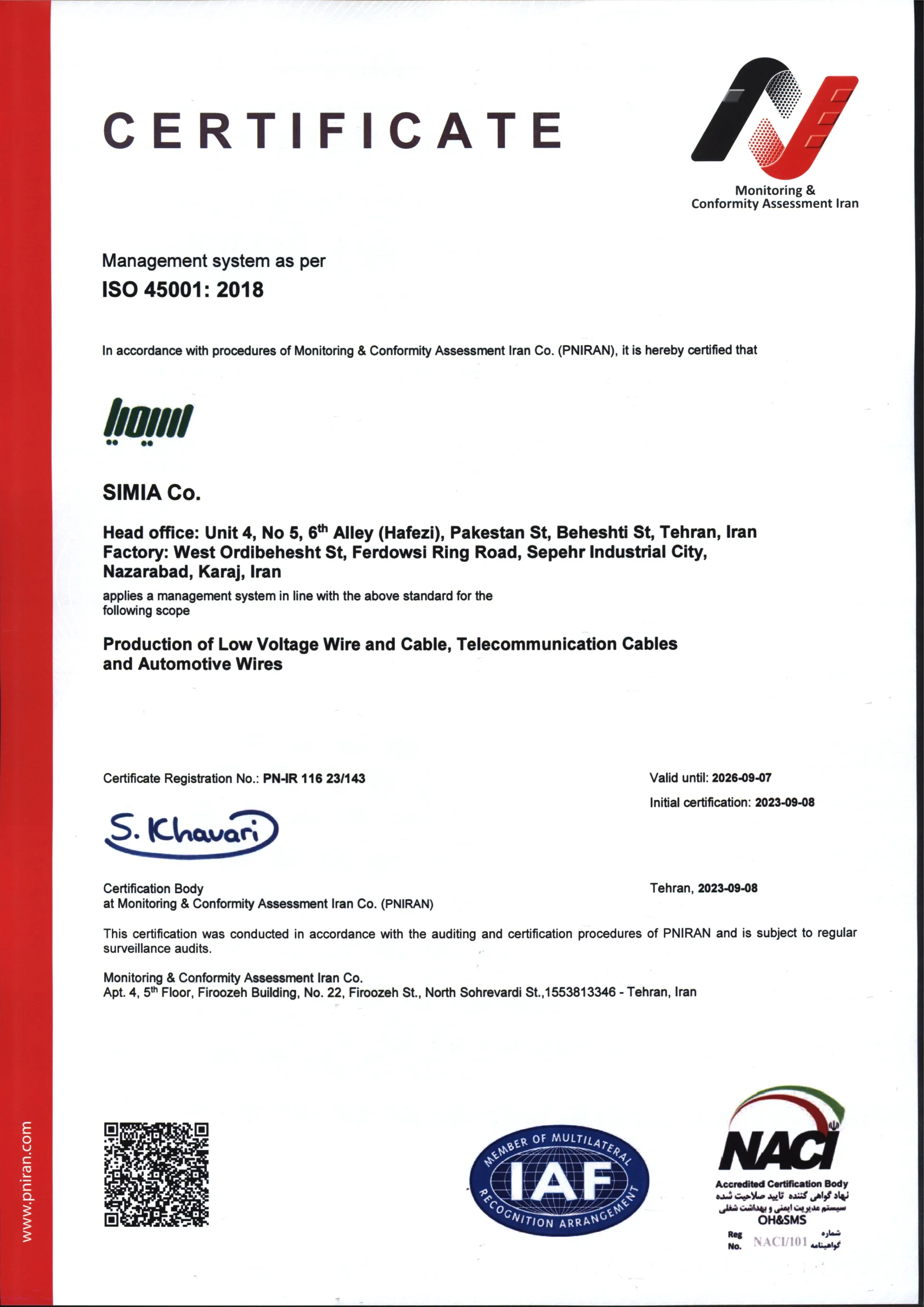 استانداردها و گواهینامه های سیم و کابل سیمیا