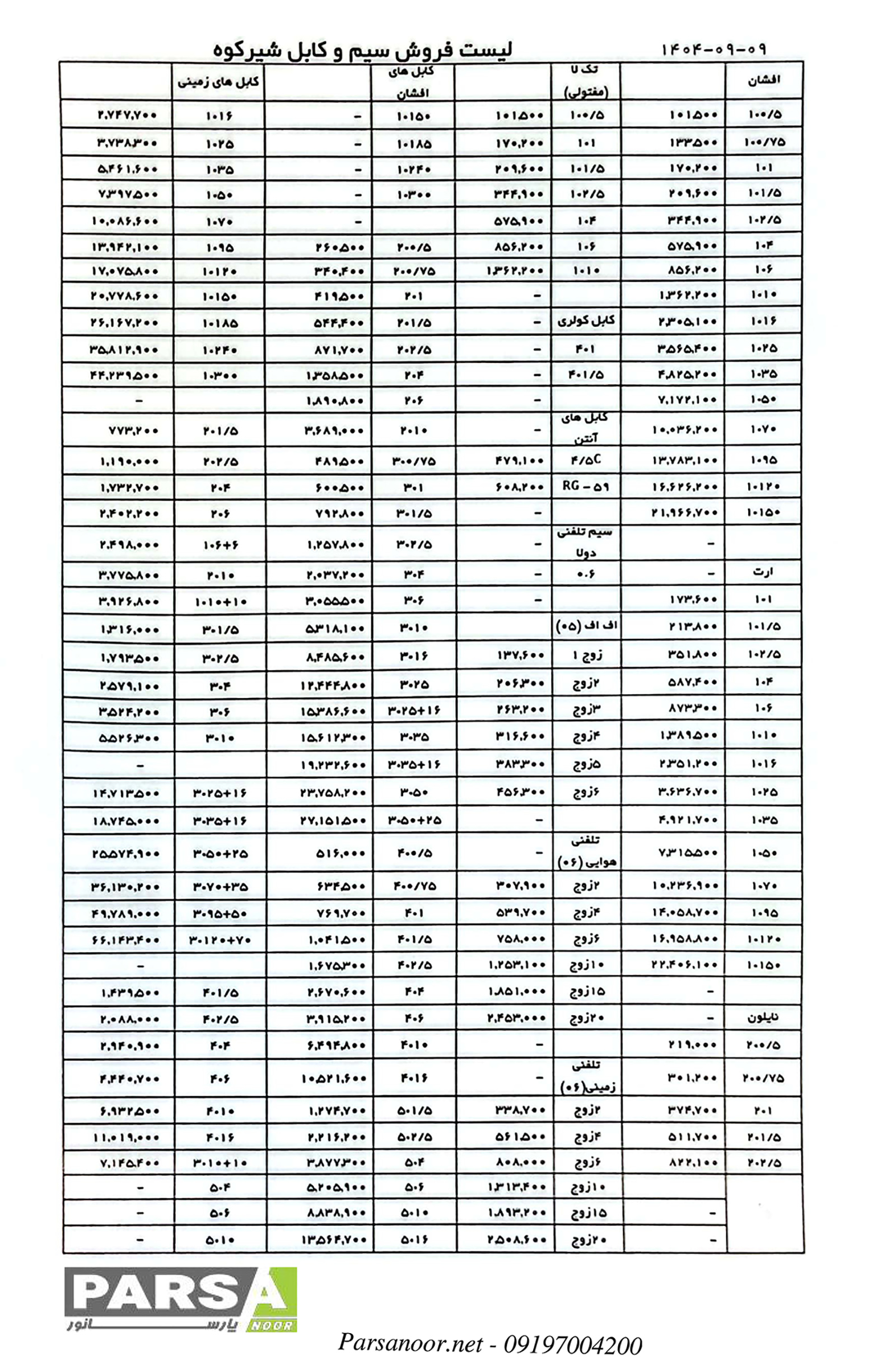 لیست سیم و کابل شیرکوه یزد آذر ماه 1404 لیست سیم و کابل شیرکوه یزد مهر ماه 1404 لیست سیم و کابل شیرکوه یزد خرداد ماه 1404 لیست قیمت سیم و کابل شیرکوه یزد 20 بهمن 1403