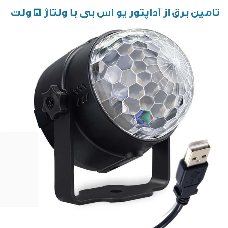 دیگر نگران پریزهای دور از دسترس نباشید! این رقص نور از طریق *پورت USB* تغذیه می‌شود. این یعنی می‌توانید آن را به پاوربانک، لپ‌تاپ یا شارژر موبایل متصل کرده و حتی در فضای باز یا مکان‌هایی که برق مستقیم ندارید، از آن استفاده کنید.