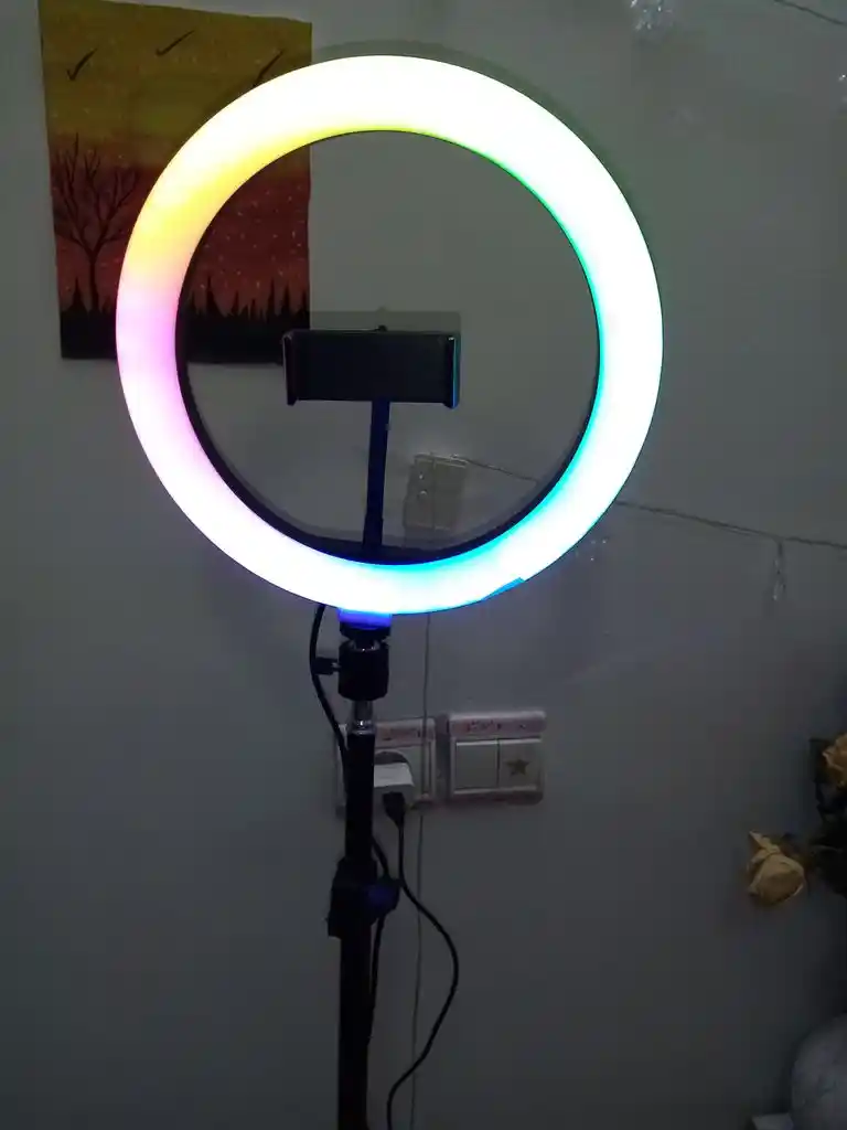رینگ لایت 10 اینچ RGB با قطر 26 سانتی‌متر و 120 عدد LED رنگی، یک گزینه‌ی کاربردی و جذاب برای عکاسی، فیلم‌برداری، تولید محتوا و استفاده در شبکه‌های اجتماعی است. این مدل علاوه بر نور سفید و زرد، دارای 17 رنگ متنوع RGB بوده که امکان ایجاد جلوه‌های نوری خلاقانه را فراهم می‌کند.