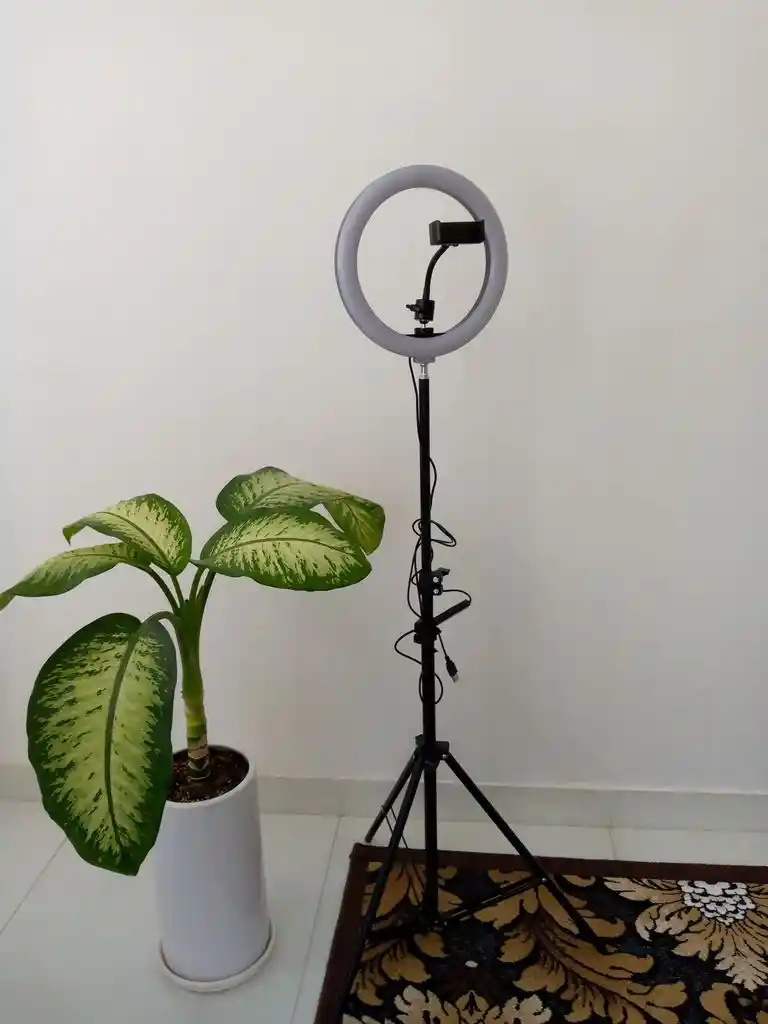 این رینگ لایت به همراه سه‌پایه قابل تنظیم تا ارتفاع 2 متر عرضه می‌شود که از 67 سانتی‌متر تا 200 سانتی‌متر قابل تنظیم است. وجود هولدر موبایل با قابلیت Pan-Tilt در مرکز رینگ، استفاده آسان برای ضبط عکس و ویدئو با گوشی را ممکن می‌سازد.