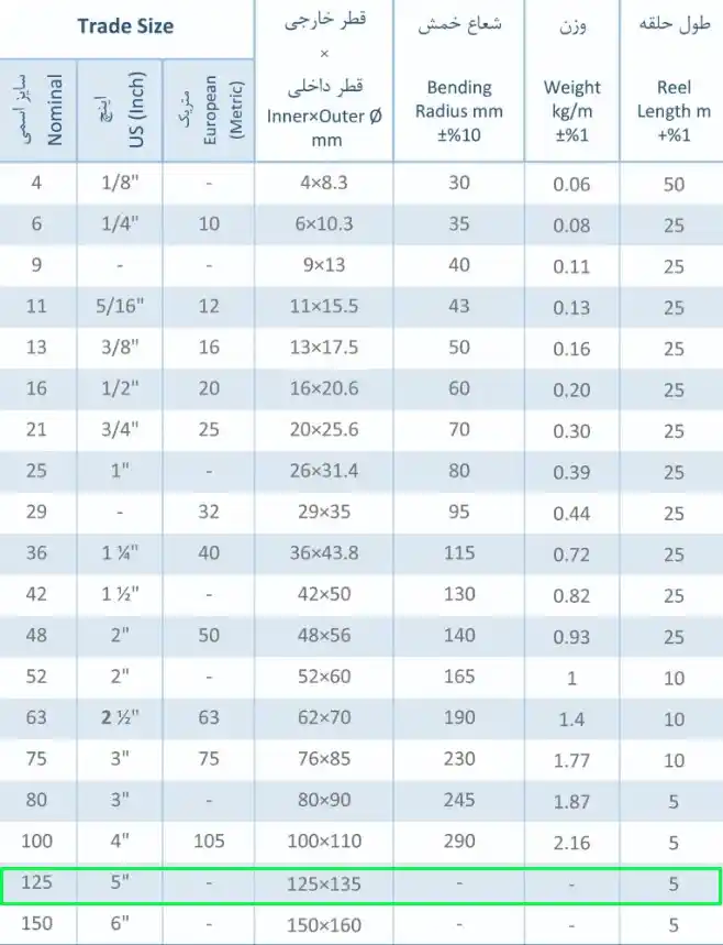 کد تخفیف لوله خرطومی فلکسی سایز 125 (فلزی روکشدار FC1P) رهورد خراسان
