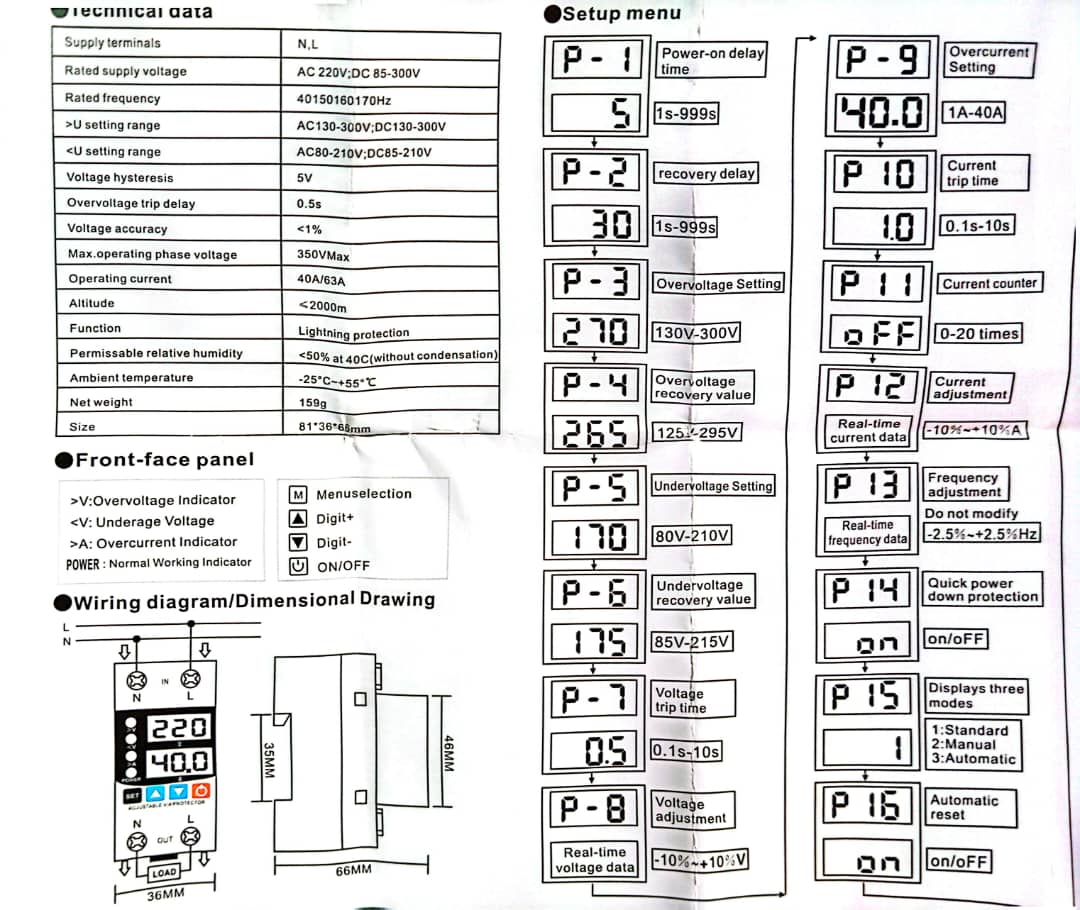 این راهنمای محافظ ولتاژ تک‌فاز دیجیتال 40 آمپر پارس فانال هست.