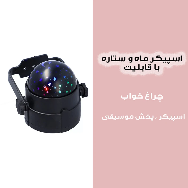 - قابلیت اصلی: قابلیت انعکاس تصاویر ماه و ستاره بر روی سقف و دیوارهای اتاق خواب، که زیبایی بصری فوقالعادهای به فضا میبخشد و به عنوان یک دستگاه ستارهنما عمل میکند.