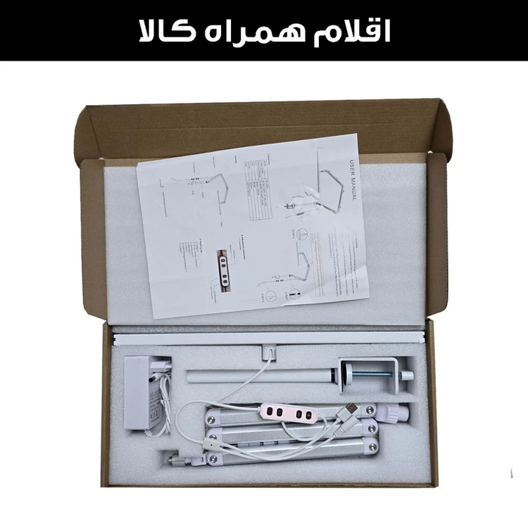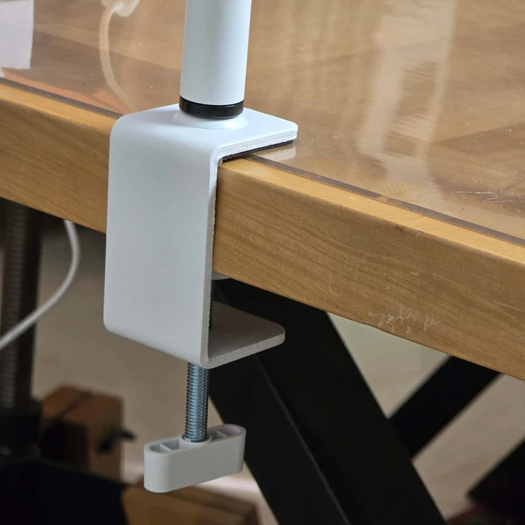 • همچنین مجهز به پایه گیره‌ای مستحکم است که به‌راحتی روی لبه میز نصب می‌شود و فضای کاری را اشغال نمی‌کند.