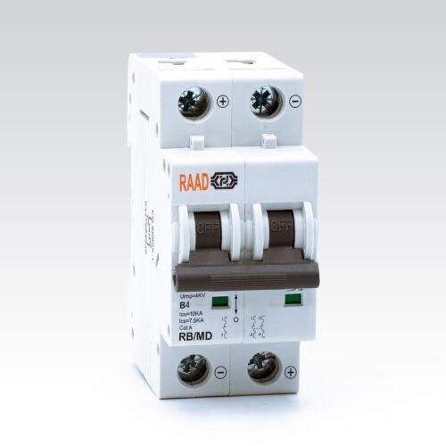 خرید عمده کلید مینیاتوری 2 پل 4 آمپر | 6 کیلوآمپر | DC | تیپ B رعد الکتریک