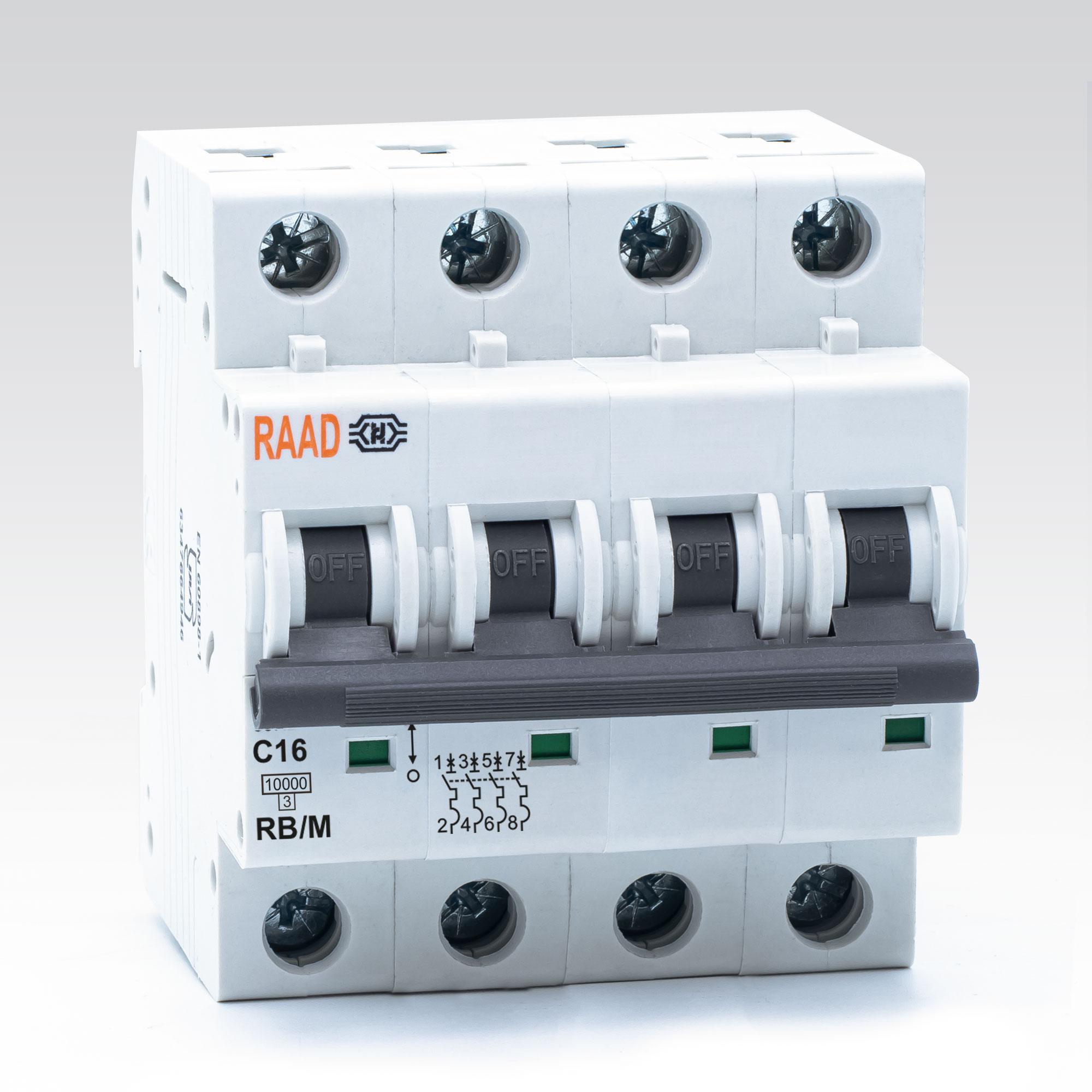 خرید مستقیم از کارخانه کلید مینیاتوری 4 پل 16 آمپر | 10 کیلوآمپر | AC | تیپ C رعد الکتریک